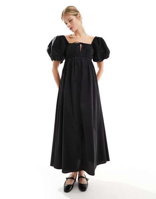 ASOS DESIGN – Svart midiklänning med puffärmar
