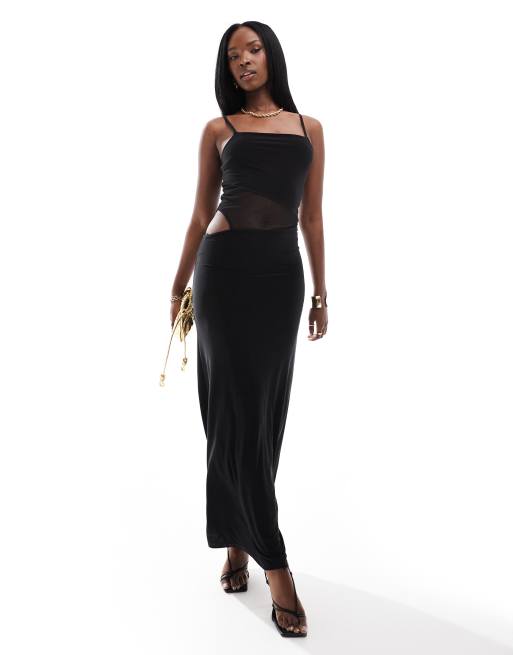 ASOS DESIGN – Svart midiklänning med smala axelband och utskurna detaljer