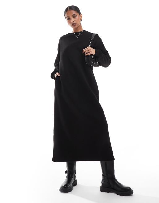 ASOS DESIGN – Svart, midilång sweatshirtklänning i oversize