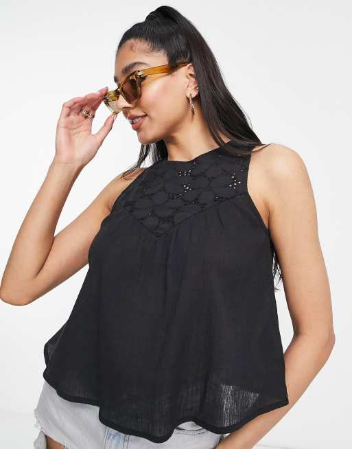ASOS DESIGN – Svart, mixat broderad topp
