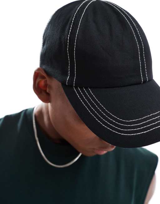 ASOS DESIGN – Svart, mjuk baseballkeps med kontrastsöm