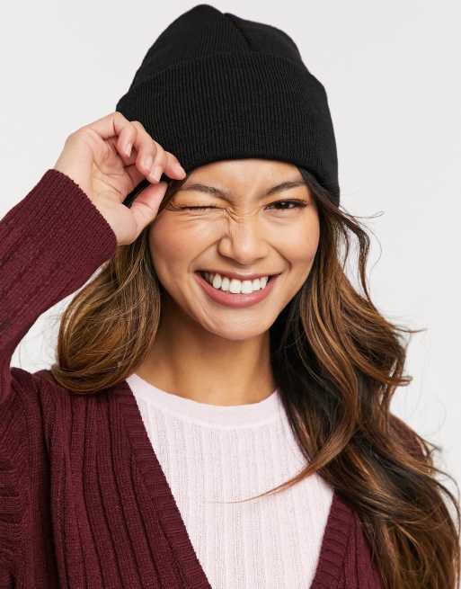 ASOS DESIGN – Svart mössa med högt uppvikt kant