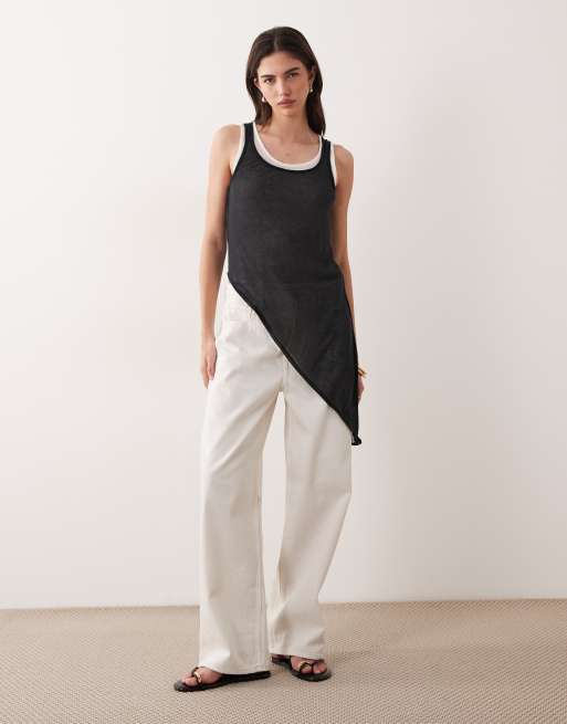 ASOS DESIGN – Svart, naturvitt, asymmetriskt och långt linne i två lager med stickad look
