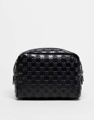 ASOS DESIGN – Svart necessär i läderimitation med präglad, schackrutig design