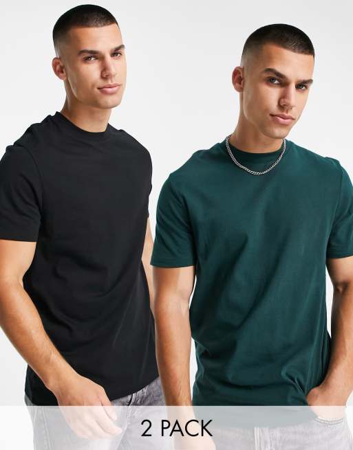 ASOS DESIGN – Svart och grön t-shirt med rund halsringning, 2-pack