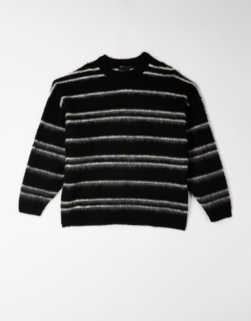 ASOS DESIGN – Svart- och naturvitrandig, superfluffigt stickad tröja i oversize