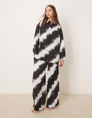 ASOS DESIGN – Svart- och vitmönstrade, plisserade byxor med vida ben, del av set