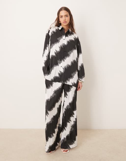 ASOS DESIGN – Svart- och vitmönstrat, plisserat set med skjorta och byxor med avslappnad passform