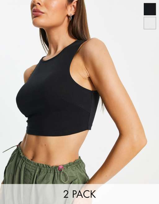 ASOS DESIGN – Svart och vitt superkort linne med hög krage, 2-pack