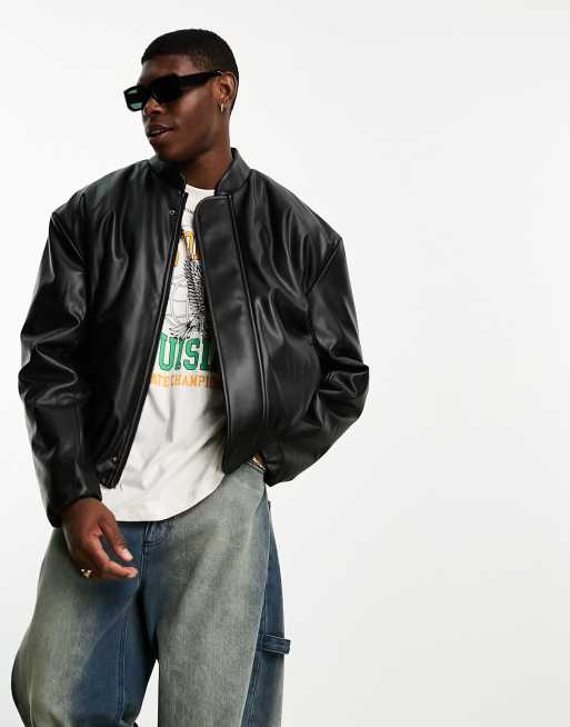 ASOS DESIGN - Svart, oversize bomberjacka i läderlook