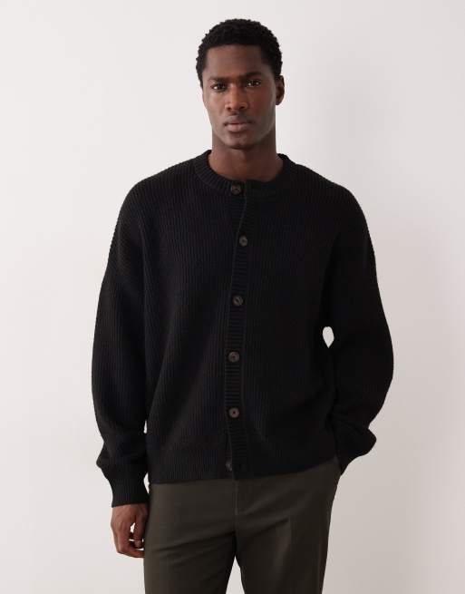ASOS DESIGN – Svart, patentstickad kofta i oversized fit med rund halsringning