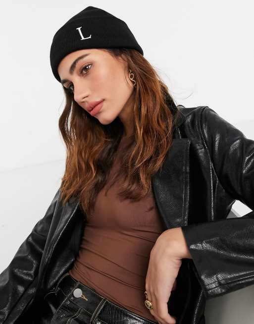 ASOS DESIGN – Svart personlig mössa med bokstaven "L"