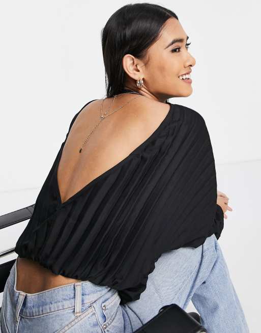 ASOS DESIGN – Svart, plisserad topp med långa, pingvinärmar