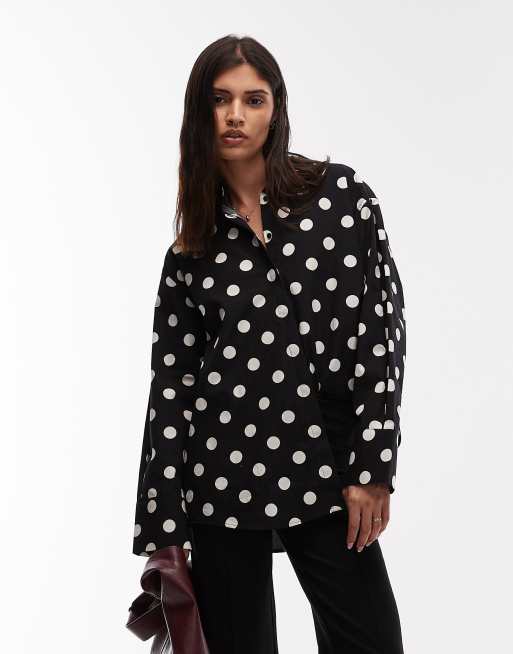 ASOS DESIGN – Svart, prickig skjorta i oversize med veck