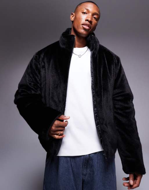 ASOS DESIGN – Svart pufferjacka i fuskpäls
