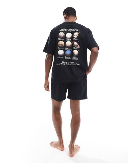 ASOS DESIGN – Svart pyjamas med solsystemstryck