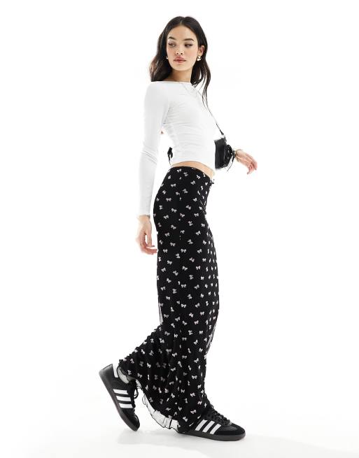 ASOS DESIGN – Svart, rak kjol med små rosetter i mesh