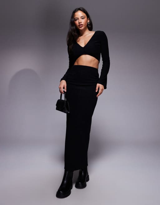 ASOS DESIGN – Svart, rak maxikjol i borstat, ribbat tyg, del av set