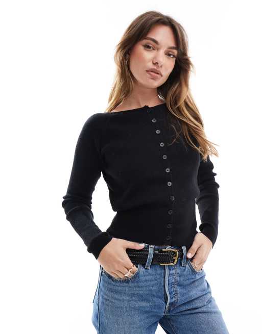 ASOS DESIGN – Svart, ribbad, figurnära kofta