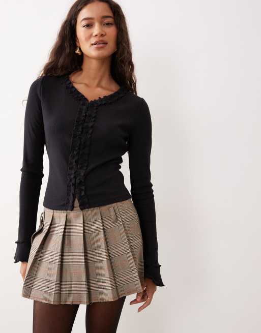 ASOS DESIGN – Svart ribbad kofta i bomull med volang