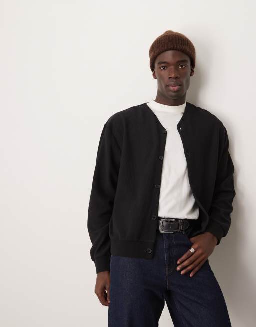 ASOS DESIGN – Svart, ribbad kofta i oversize