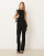 ASOS DESIGN – Svart, ribbat set med ärmlös topp i lång modell med rak halsringning och utsvängda byxor