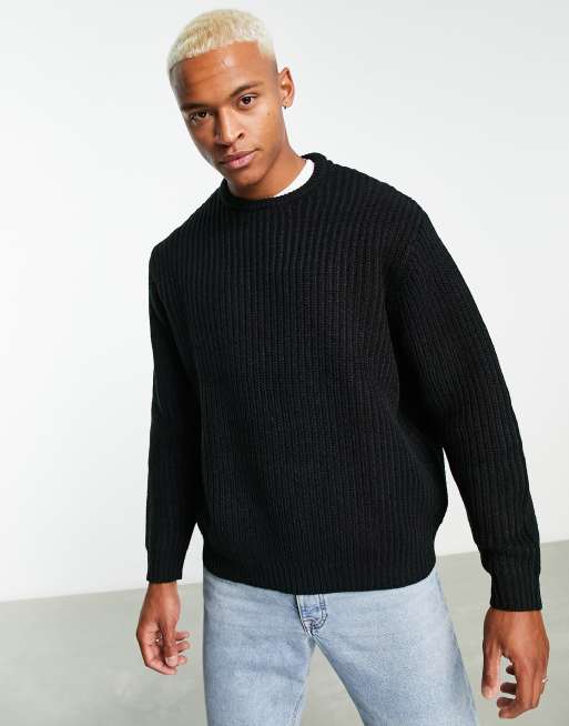 ASOS DESIGN – Svart ribbstickad fiskartröja i oversize