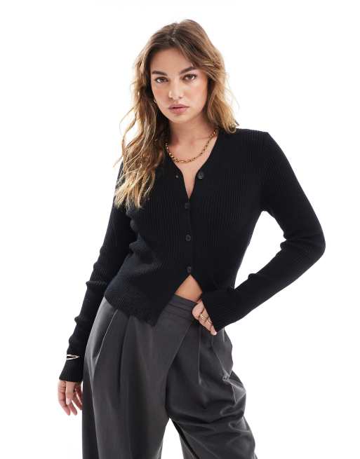ASOS DESIGN – Svart, ribbstickad kofta med v-ringning