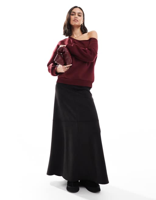 ASOS DESIGN – Svart, rund maxikjol i mockaimitation