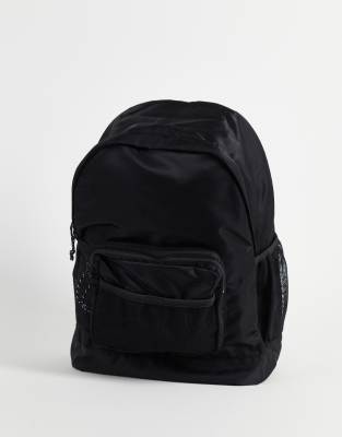 ASOS DESIGN – Svart ryggsäck i nylon med meshfickor