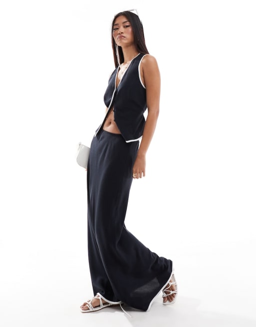 ASOS DESIGN – Svart set i linnemix med kostymväst och kjol