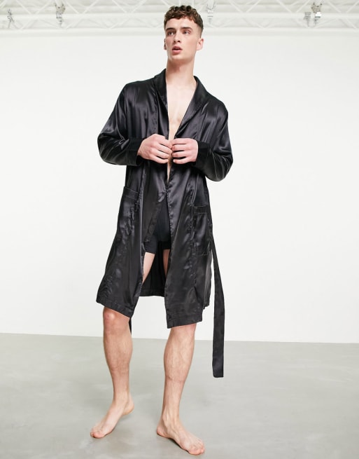ASOS DESIGN – Svart set med pyjamas & morgonrock i satin