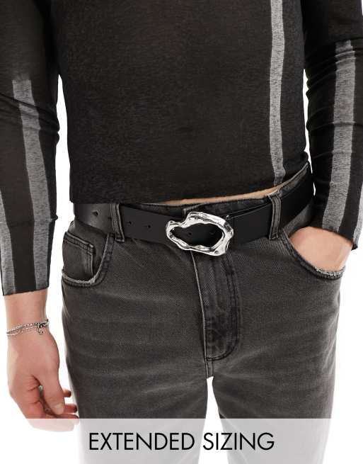 ASOS DESIGN – Svart skärp i läderimitation med silverfärgat spänne i smält design