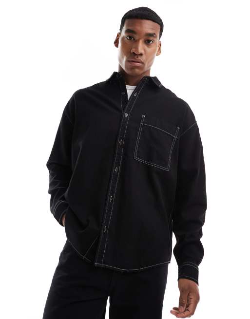 ASOS DESIGN – Svart skjorta i oversize och 90-talsstil med fyrkantig krage och påsydda fickor