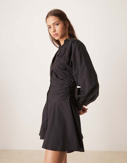 ASOS DESIGN – Svart skjortklänning i minilängd med rysch och panel
