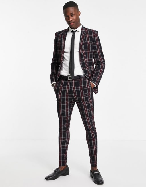 ASOS DESIGN – Svart skotskrutig kostym i super skinny passform