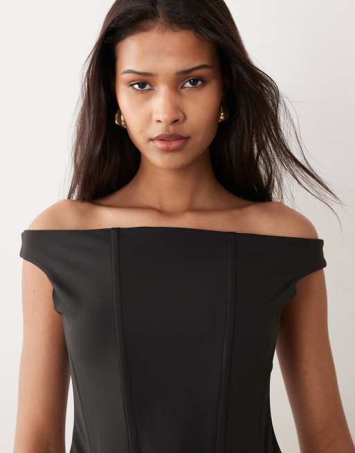 ASOS DESIGN – Svart, skulpterande korsettopp med bardotringning och skenor