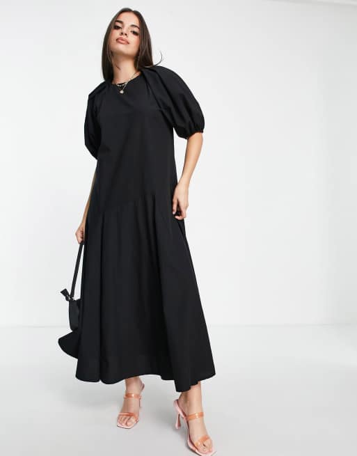 ASOS DESIGN – Svart smockklänning i midilängd med klockad kjol