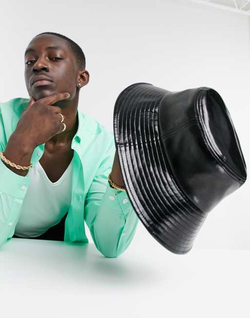 ASOS DESIGN – Svart solhatt i vinyl med brett brätte