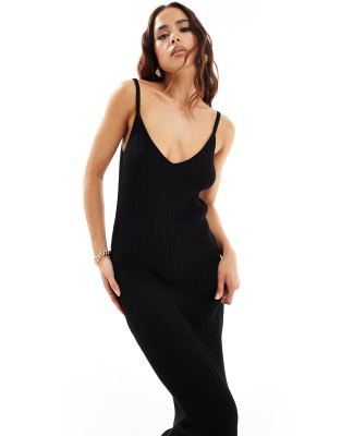 ASOS DESIGN – Svart, stickad midaxiklänning med v-ringning och smala axelband