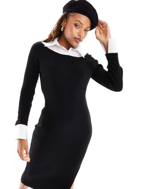 ASOS DESIGN – Svart stickad midiklänning med skjortkrage