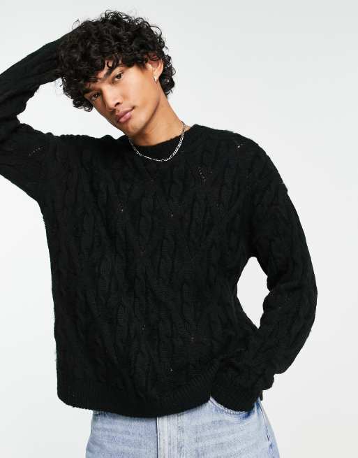 ASOS DESIGN – Svart stickad tröja i oversize med håldesign