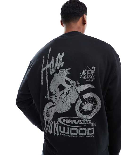 ASOS DESIGN – Svart sweatshirt i oversize med tryck baktill