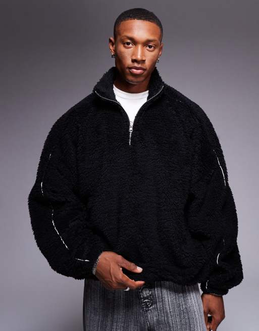 ASOS DESIGN – Svart sweatshirt i teddy och extrem oversize med kvartslång dragkedja och kantband