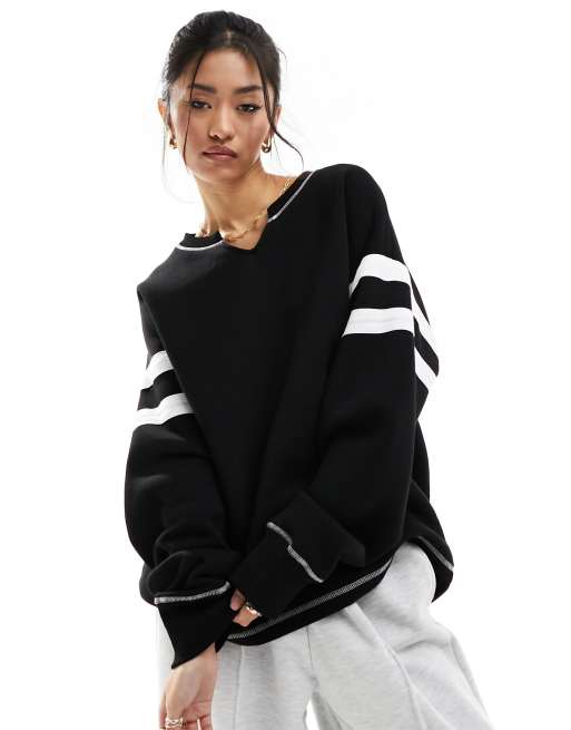 ASOS DESIGN – Svart sweatshirt med kontrastsömmar och sprund vid halsen
