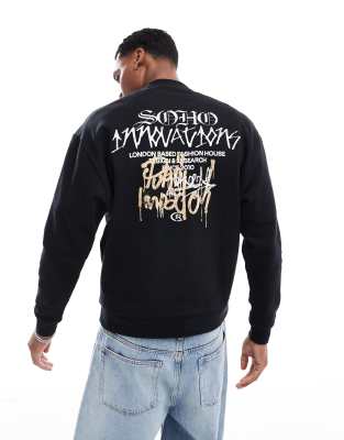 ASOS DESIGN – Svart sweatshirt med tryck fram- och baktill