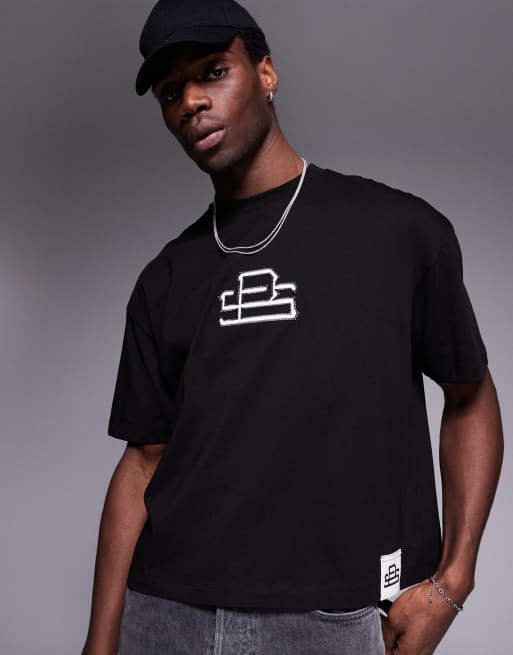 ASOS DESIGN – Svart t-shirt i oversize med boxig passform och logga framtill