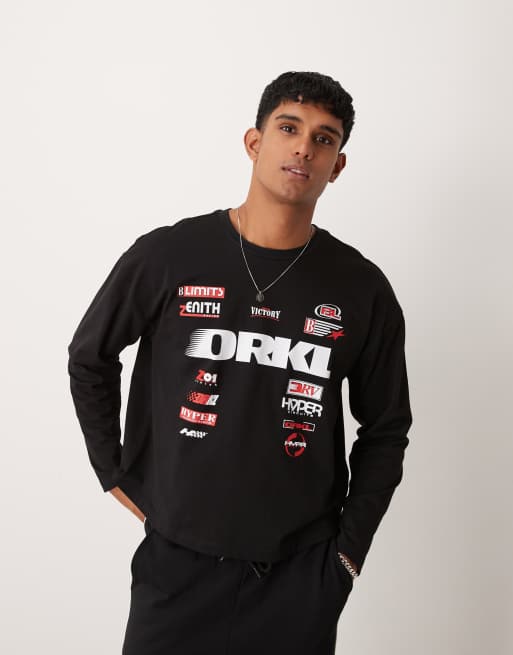 ASOS DESIGN – Svart t-shirt i oversize med boxig passform och racingtryck baktill