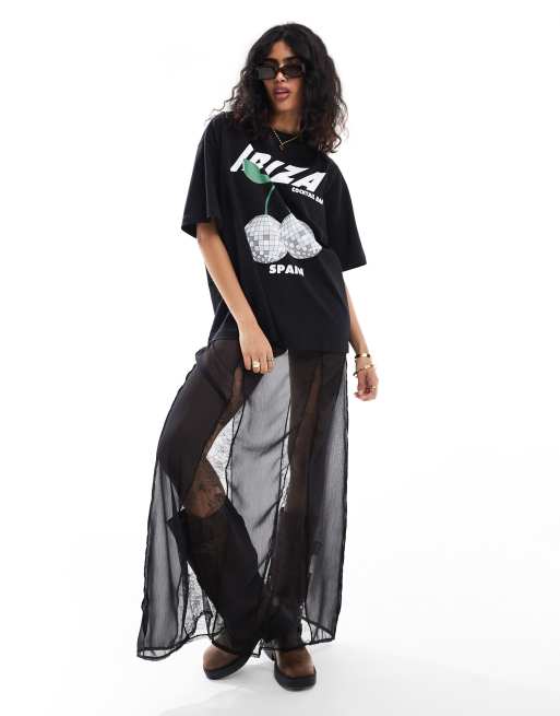 ASOS DESIGN – Svart t-shirt i oversize med "Ibiza disco"-tryck