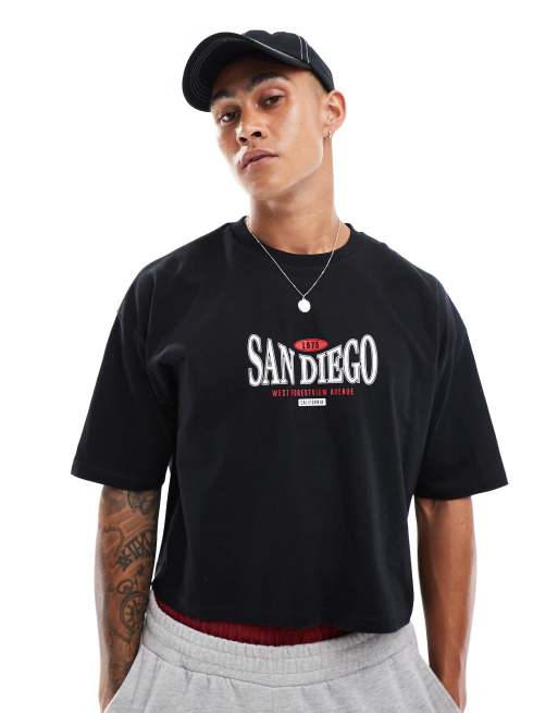 ASOS DESIGN – Svart t-shirt i oversize med kort design och stadstryck på bröstet